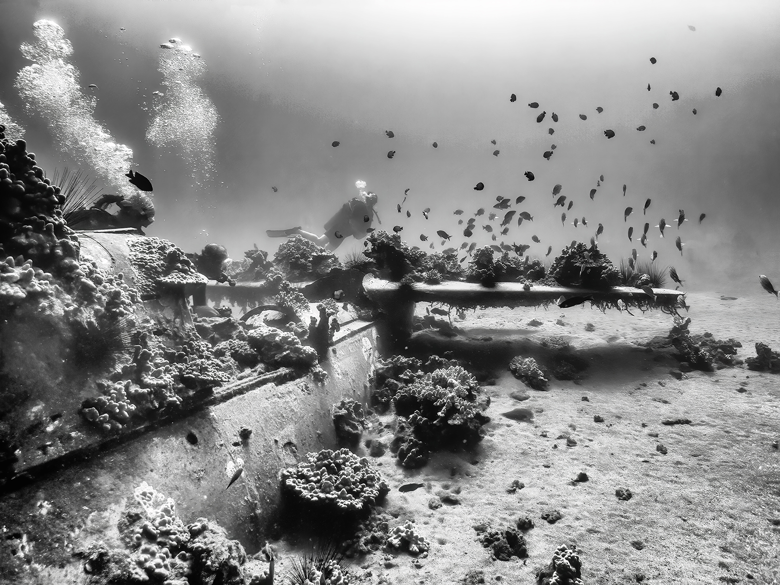 Fast forward to January 2010, when the story goes that a couple of fishermen tipped off a local dive shop owner that while fishing, their prey kept disappearing “beneath the wings.” This led Brad Varney of B&B Scuba to rediscover the Helldiver and be among the first to see her again.