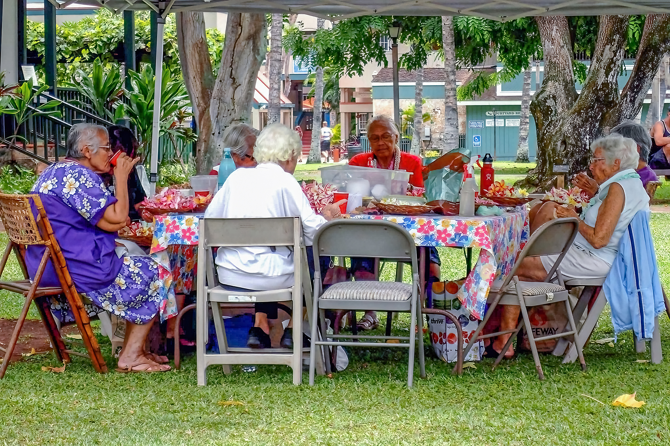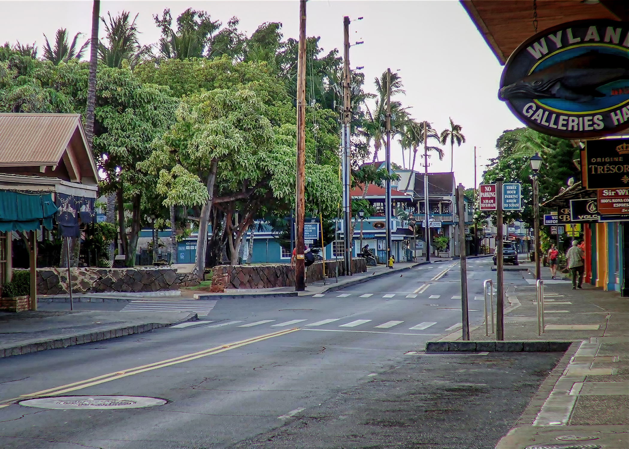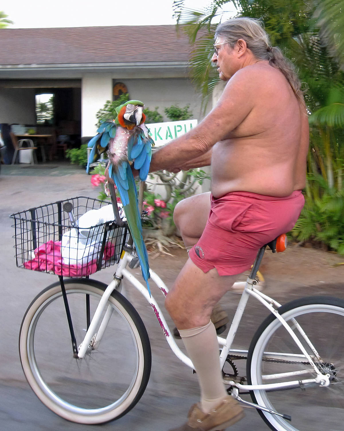I loved going into town early, by myself, to watch it wake up before the crowds arrived. I saw the crossing guard give high-fives to every child in the crosswalk heading to the elementary school, waitstaff setting up with windows thrown open, and a round table full of aunties making leis on the front lawn at the Baldwin house. There was always a fine cast of characters under the Banyan tree, a mix of guys selling weed, homeless persons, tourists, and, in recent years, a bunch of chickens. We had other favorite characters we loved to see, like Keith, who rode his bike through town with a parrot on the handlebars for many, many years. We considered a Keith sighting a good luck charm.