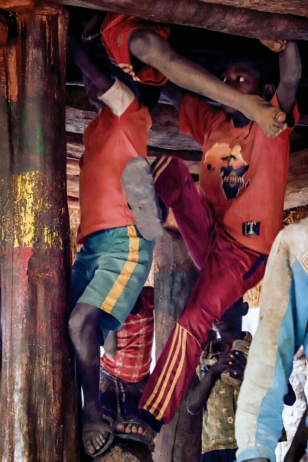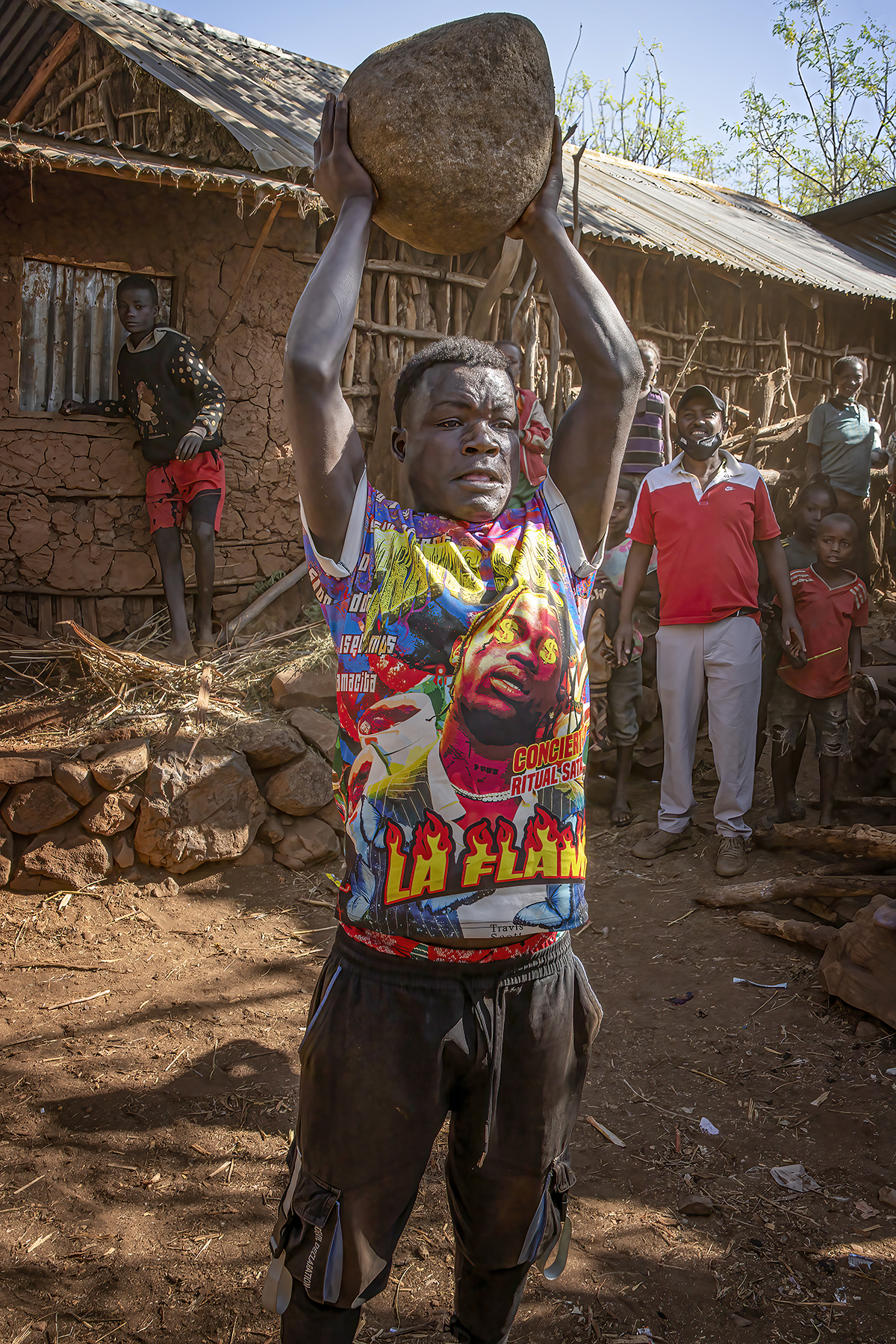 Boys from age 12 until marriage sleep in a raised room above the community center for protection and defense. When ready for marriage, a young man must lift a large boulder overhead and drop it behind him to prove his strength.