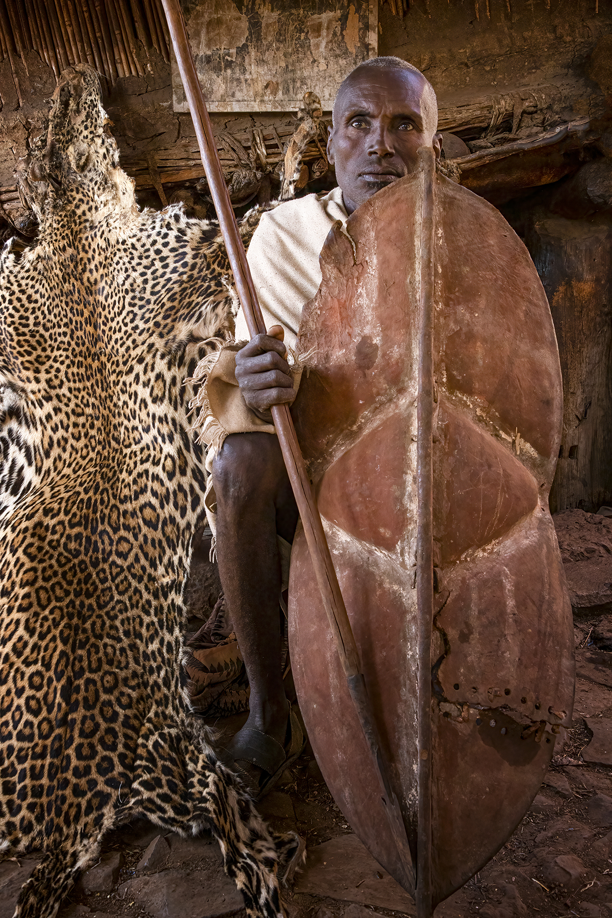 I met a warrior in the tight confines of his family compound, surrounded by gawking children and relatives. He wore traditional garb and had kind, wise eyes. Ten years ago, he killed a leopard using only his spear and a shield of elephant hide; the pelt is proudly displayed in the compound. He is treated as a hero, and you can sense the family’s pride.