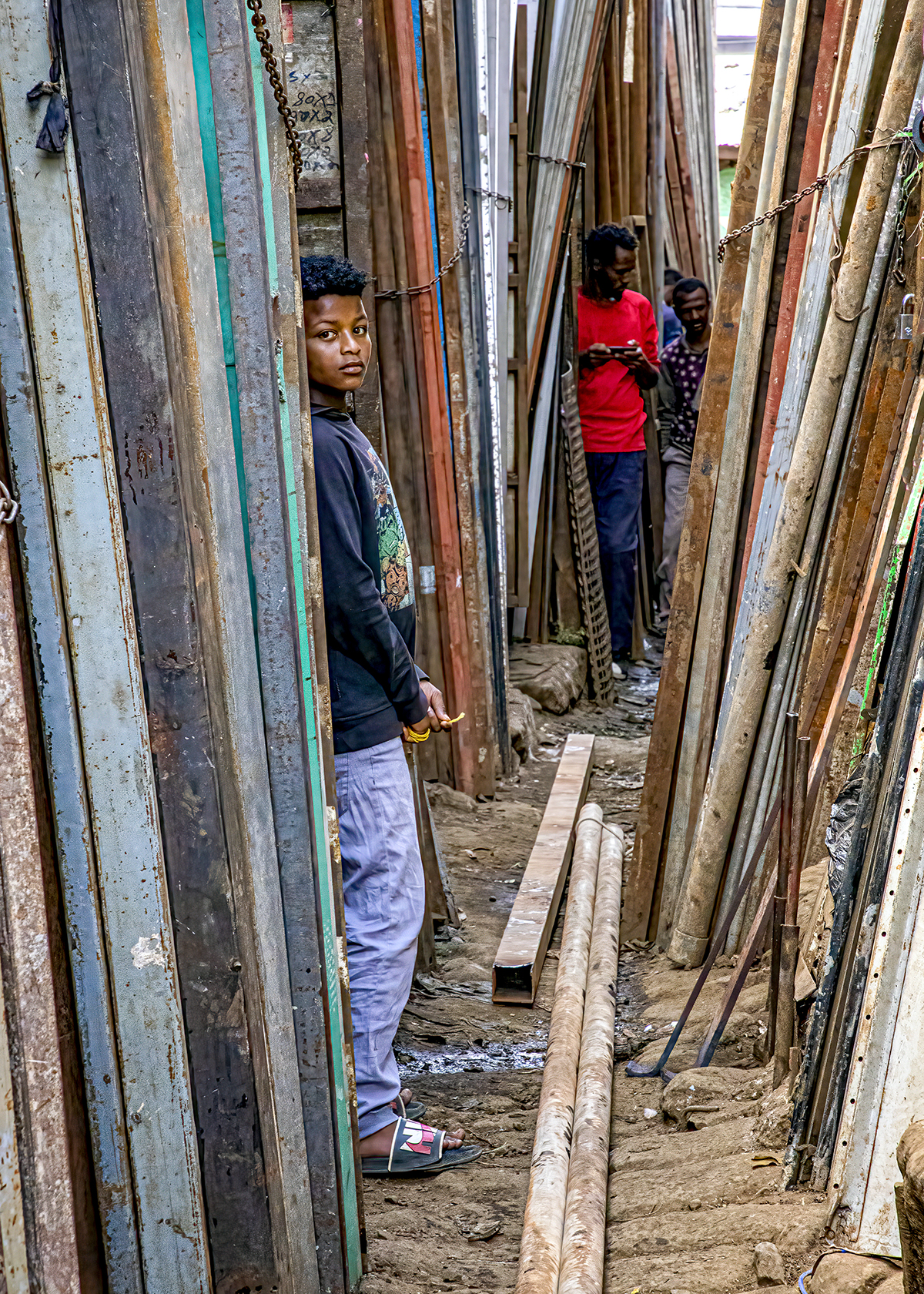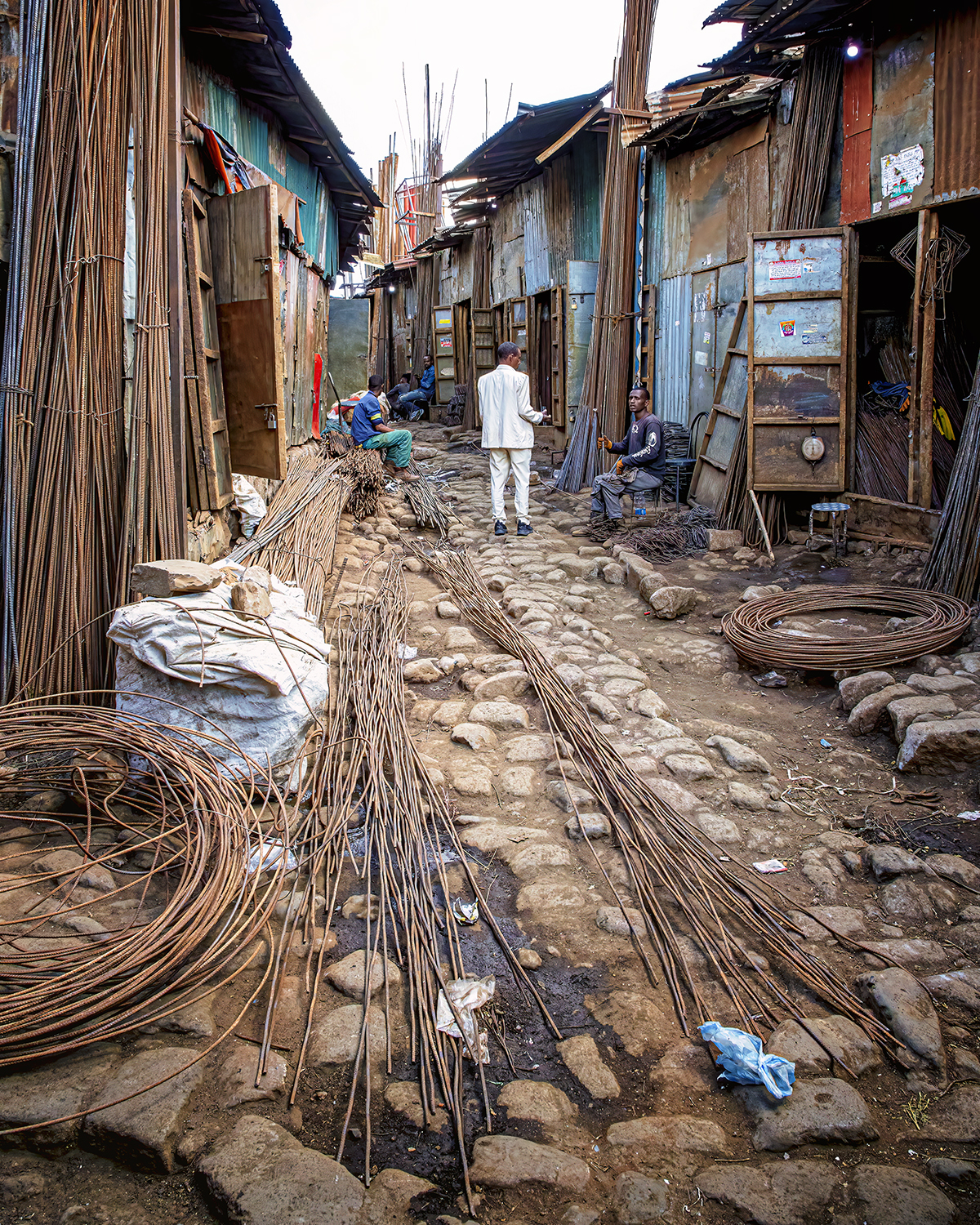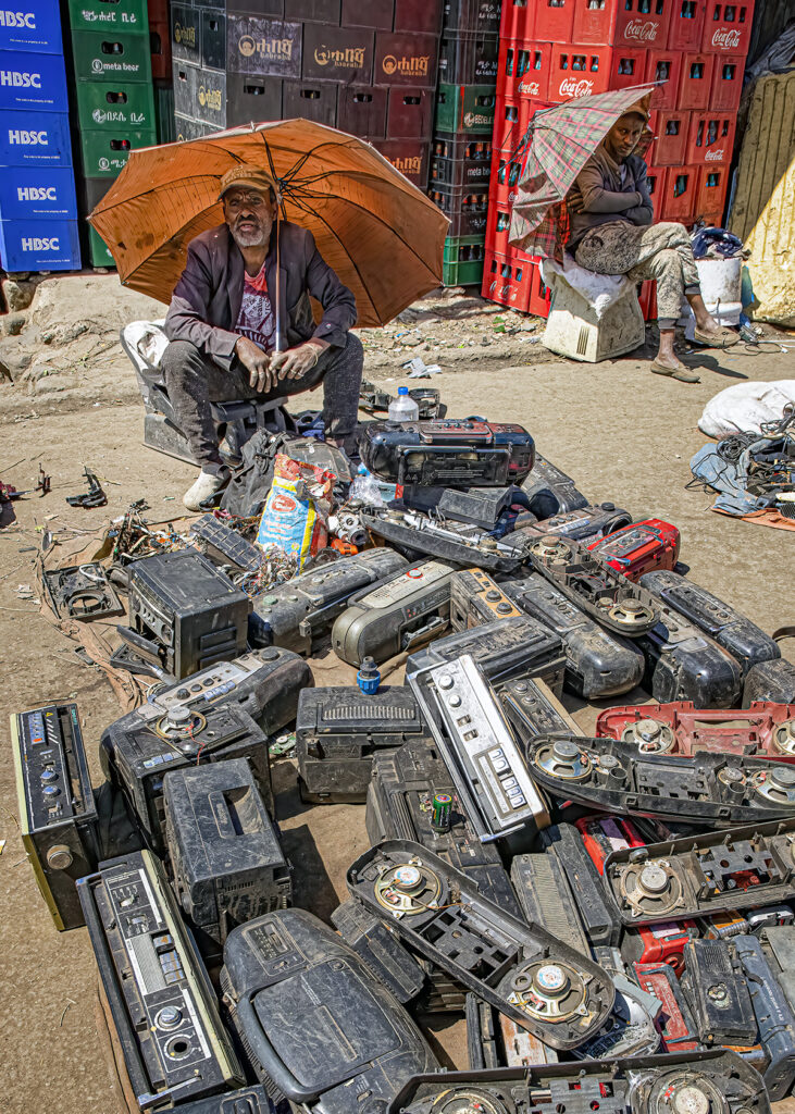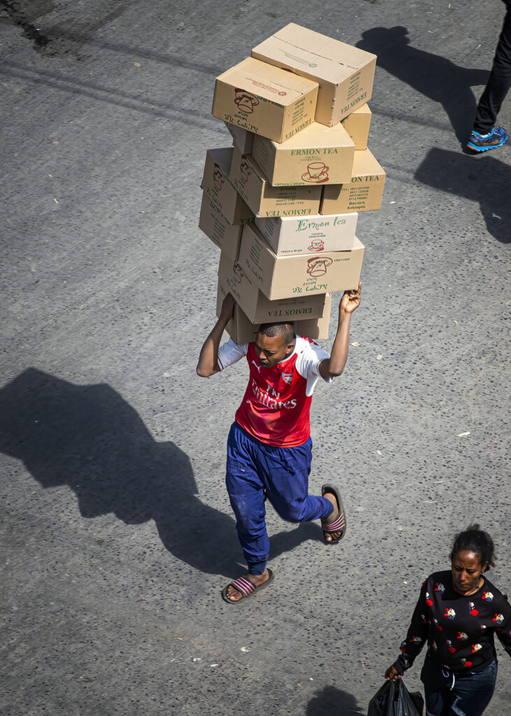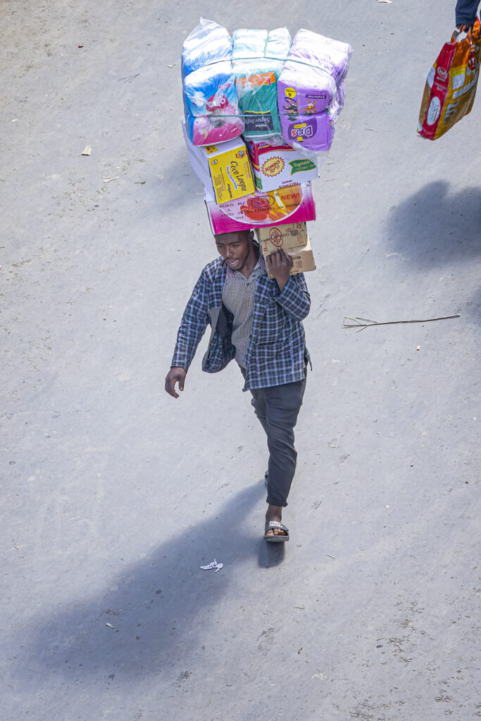 People did double-takes when they saw me; I’m obviously a foreigner here. There were calls of “Welcome!”, “Hello!” and “Ferenji” (pronounced Fur-EHN-gee), meaning foreigner. Almost everyone was friendly, but at one point that first day, friends of Yared’s whispered in his ear, and he told me the “glue sniffers” were watching us. We had to get out of that area. He hustled me away, his head on a swivel. A security guard carrying a big stick saw us and walked alongside us until we were clear of that area.