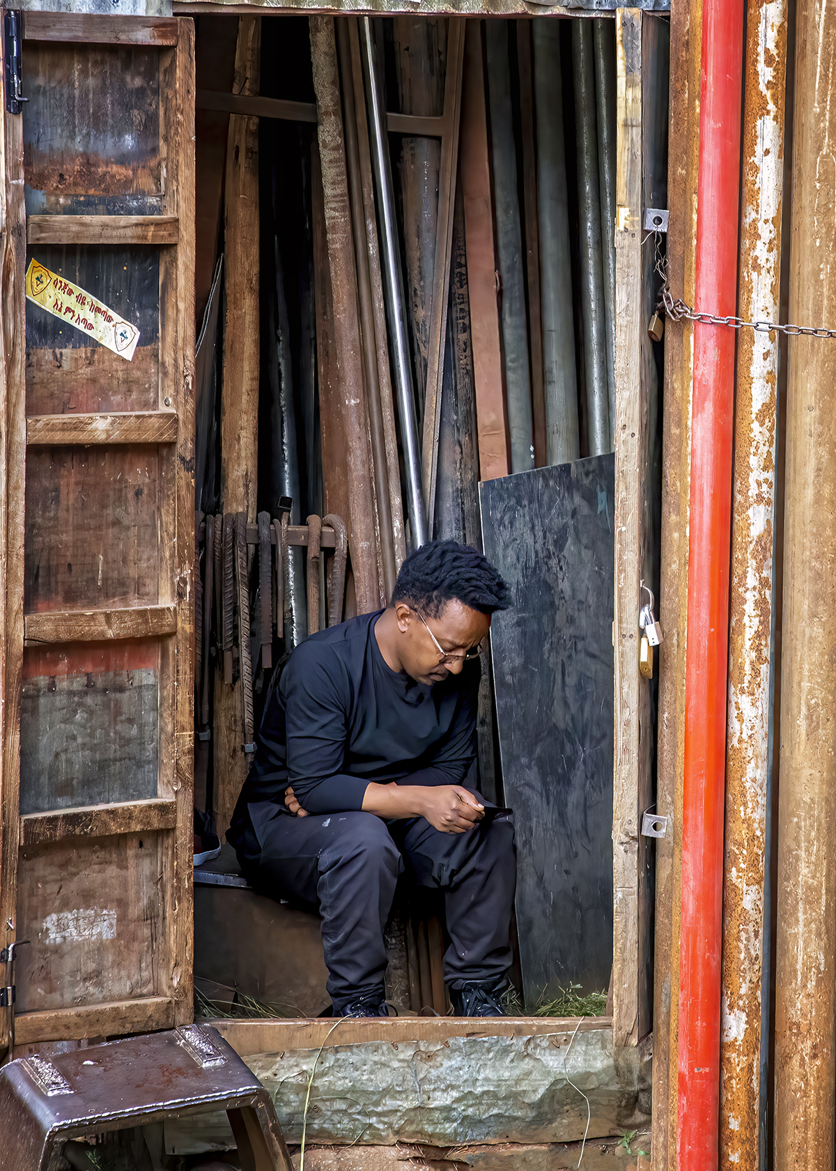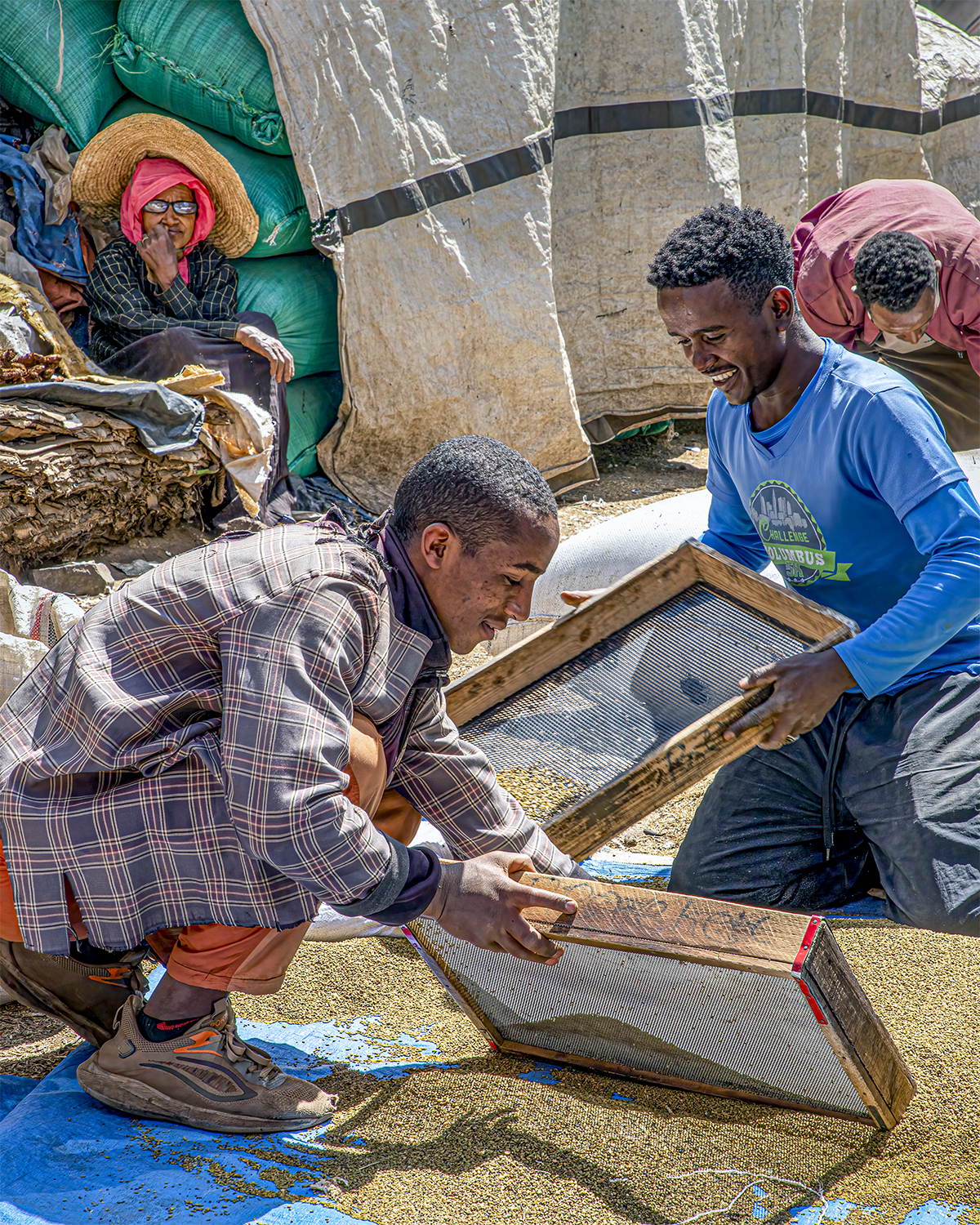Yared had me do a variety of activities: sift grain (teff) in a small tin warehouse, climb a ladder to a hostel rooftop to view the crowded streets below, sit in an alley and have some coffee, and watch him demonstrate the chicken dance (Ethiopians LOVE dancing!).