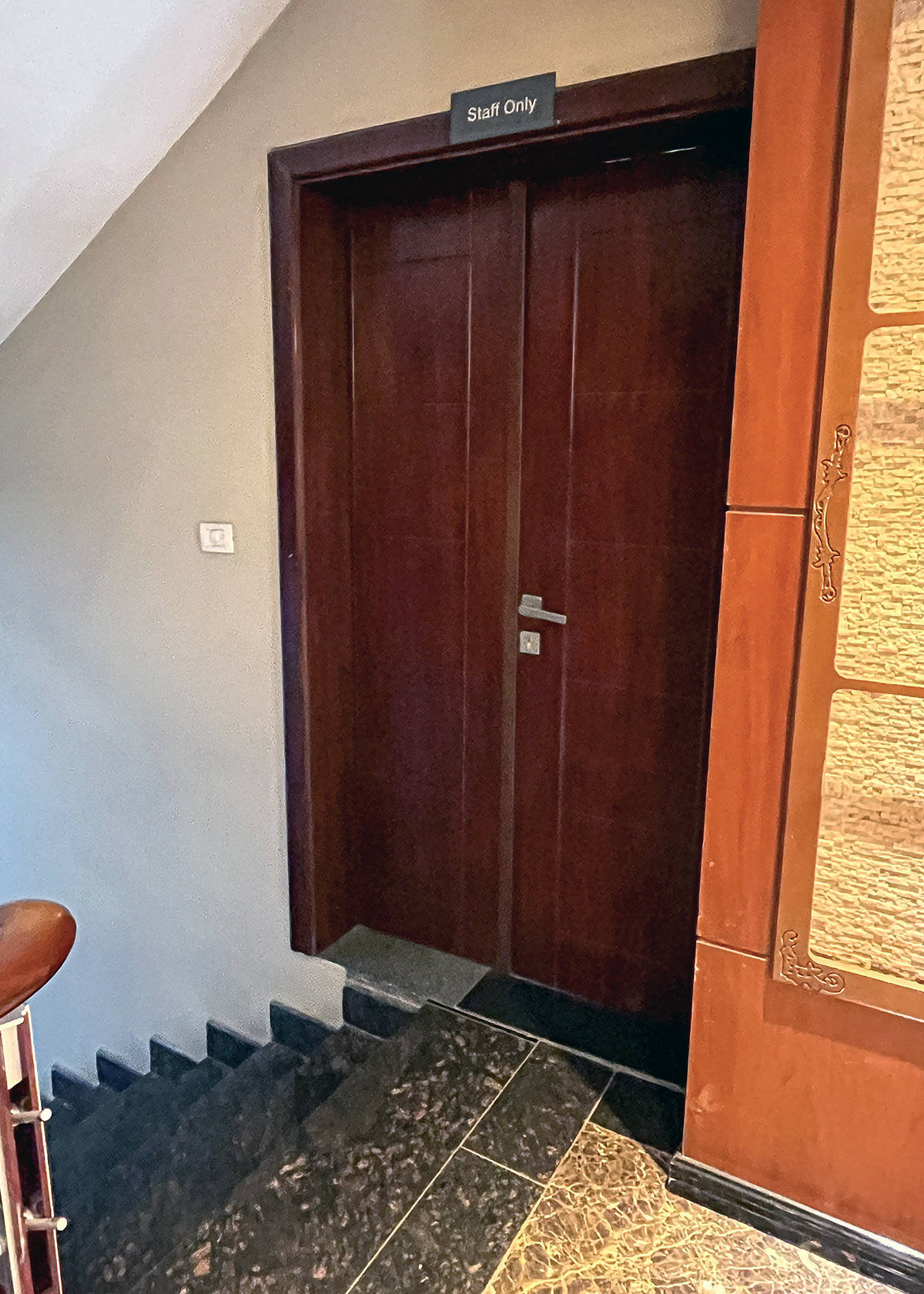 I stayed at Best Western, where the staff and room were lovely. I quickly learned that building codes are different in Ethiopia. There was a gap beneath the stairs that a child could easily walk through and fall a couple of floors straight down. And the door from the office, right at the top of the stairs, gave me anxiety just looking at it.